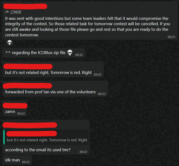 The competition was split over two days; challenges were split between “attack style” and “defence style” (red and blue), with 9 hours of competing overall. While I don’t exactly understand how the challenges were split3, there was still a healthy mix of categories, along with a dose of challenges contributed by NUS GreyHats. ICO was also the first CTF where I actually attempted (but didn’t solve) some non-ret2win pwn challenges.